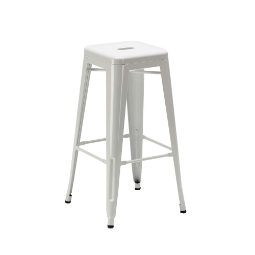 Industrial style bar stool, comfortable and original. The support structure consists of four feet with a considerable diameter, which ensure stability for those who sit and avoid the classic tilting sensation that is experienced on high stools, also thanks to the presence of a footrest which increases the feeling of robustness of the seat.