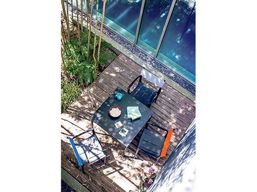 Striped Table di Magis è una collezione di tavoli ideali per interni o outdoor disegnata da Ronan & Erwan Bouroullec. Stile familiare e contemporaneo, leggeri e pratici. La collezione di tavoli Striped conta tre diverse forme, disponibili con struttura in tubo di acciaio verniciato e piano in laminato HPL da 12 mm  nero. Grazie ai materiali di alta qualità e alle innovative tecniche di lavorazione, il tavolo resiste all'azione di sole e pioggia, garantendo una lunga durata nel tempo.